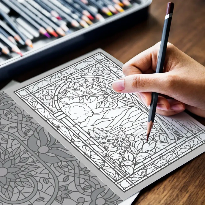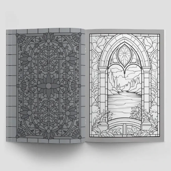 Descubre diseños inspirados vidrieras. Cada paisaje está pensado para que, al colorear, sientas cómo la luz y el color cobran vida propia en el papel.